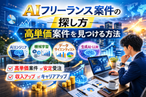 この記事では、AIフリーランス案件の種類、探し方、高単価案件を狙うコツ、注意点までをわかりやすく解説します。